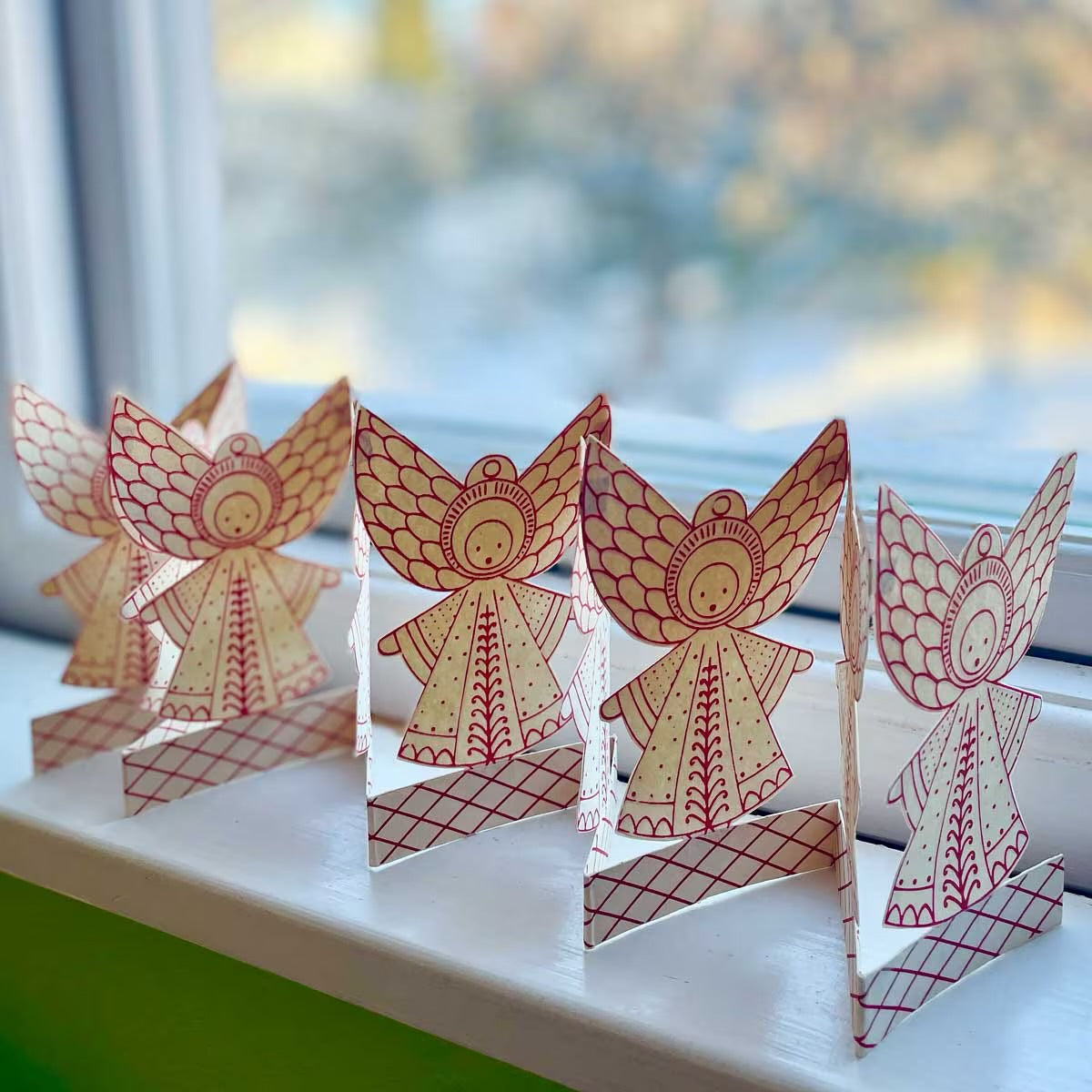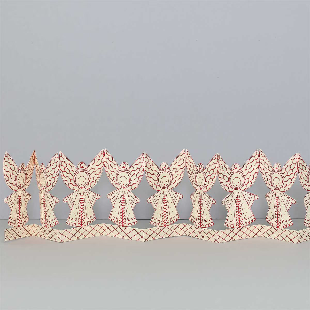 A beautiful Christmas decoration to display on the table or in the window. Unfold it like an accordion and it stands on its own. The Ornate Angels Folding Paper Row is made from handmade paper and is easy to fold and reuse.